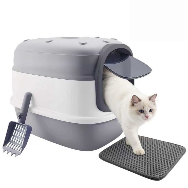 Jia Xi Cat Litter Box with Litter Mat, 20″x15″x15″ Large Litter Box for Big Cats, Enclosed Removable Litter Boxs, Flip-Top Design, Odor Control, Easy to Clean (Grey)